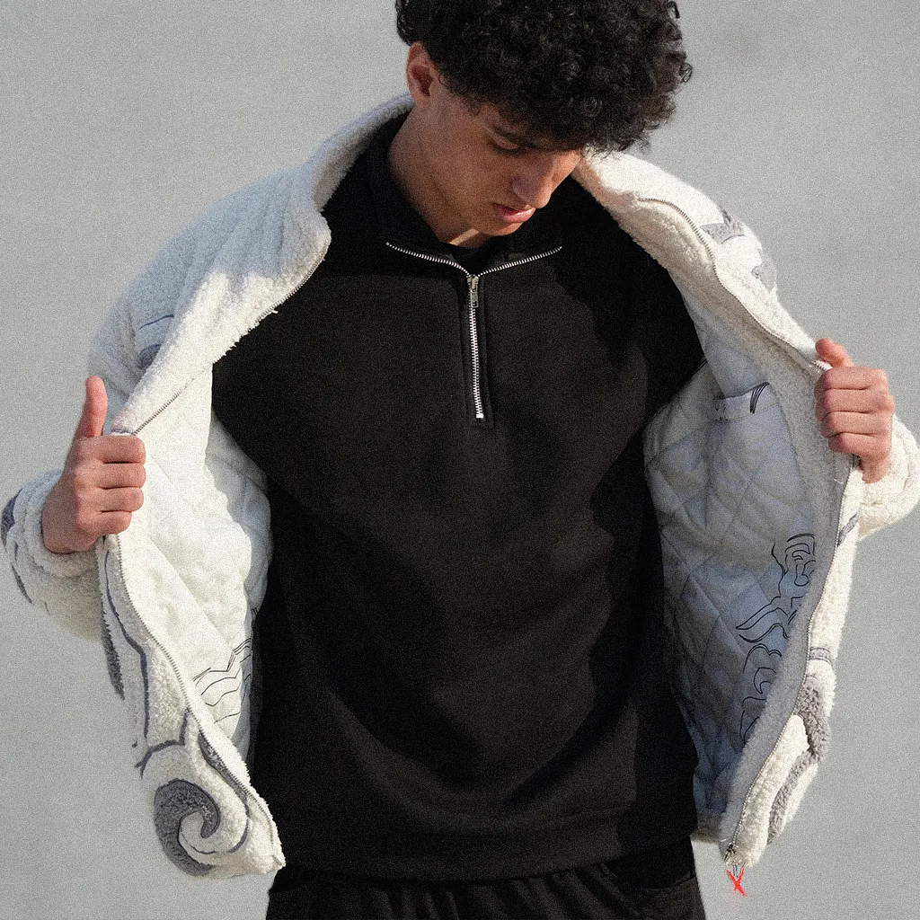 All of this is crafted on a WARM, PREMIUM SHERPA FLEECE JACKET 🖤 The material is ultra cozy, thick & plush with amazing heat retention, durable structured fit yet endlessly soft to the touch, ideal for everyday street styling, whether you’re rocking fits out on the town, matching fits with your crew, or repping your love for One Piece’s deepest world lore! The print & embroidery quality is immaculate—no stiff brittle finish, just a smooth, long-lasting graphic that stays crisp wear after wear and wash after wash, never fading, peeling or cracking!
